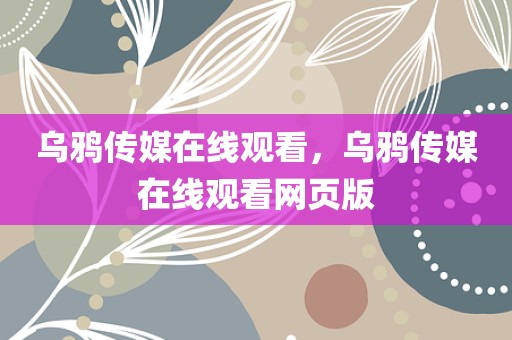 在数字化时代,网络媒体平台如雨后春笋般涌现,其中乌鸦传媒以其独特的魅力和丰富的资源,吸引了大量在线观众,无论是体育赛事、音乐会、电影放映还是各类娱乐活动,乌鸦传媒都为观众提供了便捷的在线观看体验,就让我们一同分享在乌鸦传媒在线观看的精彩体验。